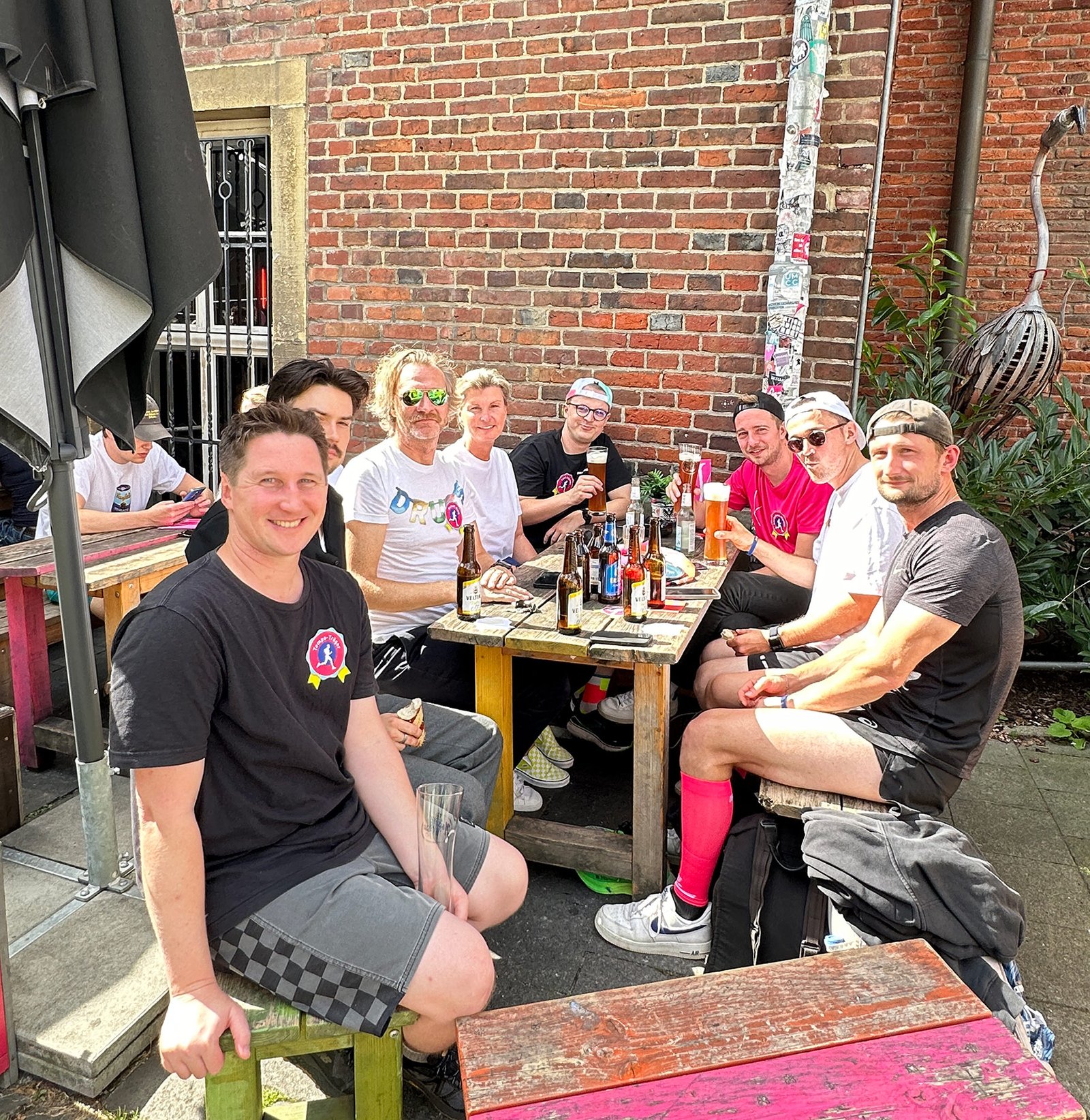 Nach dem Zieleinlauf mit sehr guten und KRESINGS intern rekordverdächtigen Zeiten wurde der Erfolg bei isotonischen Getränken im FYAL gefeiert. Die Sonne spielte auch mit und so gab es noch mehr Rekorde in Münster: Es liefen so viele Sportlerinnen und Sportler wie noch nie mit.