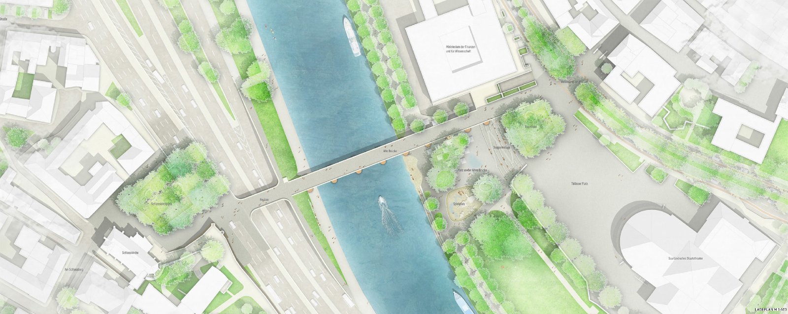 Wettbewerbsbeitrag für eine denkmalgerechte Sanierung und städtebauliche Aufwertung einer Steinbrücke über die Saar aus der Mitte des 16. Jahrhunderts.