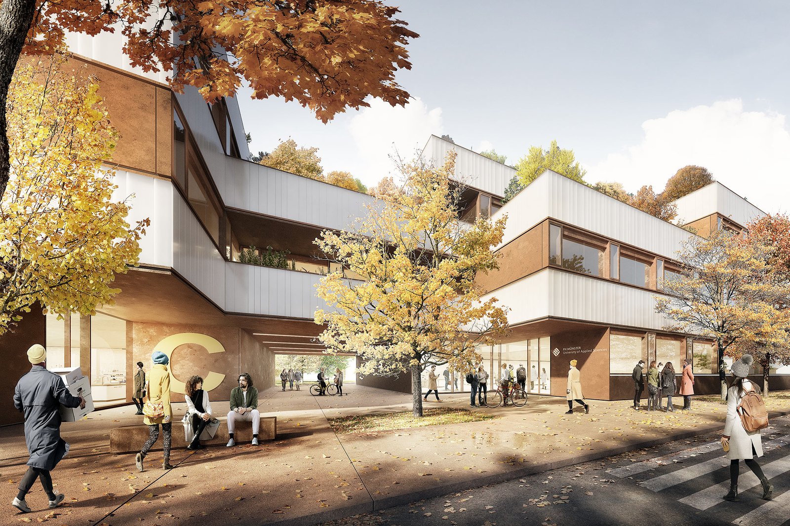 The new laboratory building “C” articulates the spatial conclusion of the northern campus area. This strengthens and completes the idea of a campus in green surroundings. The result is a new, sustainable and distinctive urban ensemble that gives the research location a strong identity on the north side and clear orientation within the campus grounds. A main thoroughfare as a public access route on the south side completes the pedestrian connections in an east-west direction within the campus.