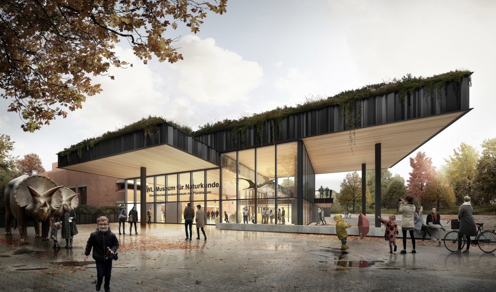 The LWL Natural History Museum in Münster with its adjoining planetarium is well known beyond the region. Somewhat outdated - the existing building dates back to the early 1980s - it is now being renovated, converted and extended. In addition to the infrastructural modernization, new office space, an atrium and a visitor center are being created. The predominant materials for the sustainable extension are wood and glass. The bright and light-flooded extension expands the museum for communicative uses, but does not push the striking existing brick building into the background.