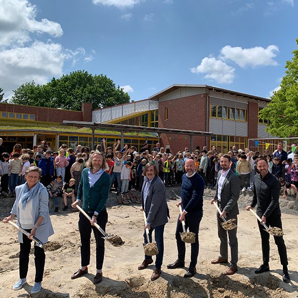 An der Grundschule Nordhorn wurde am Freitag der symbolische erste Spatenstich für den dreigeschossigen Erweiterungsbau gesetzt. In Nordhorn entsteht eine neue Mensa im Erdgeschoss und zwei Unterrichtsmodule mit offenen Raumkonzepten und Differenzierungsräumen in den beiden Obergeschossen.