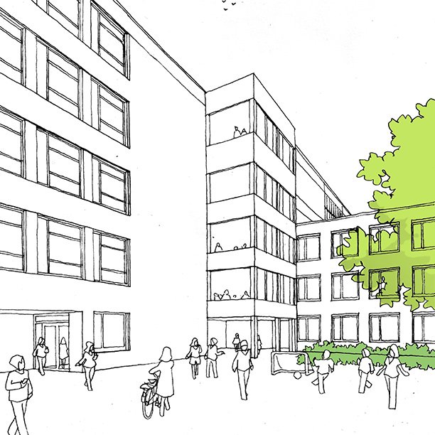 Deutschlands Schulen platzen aus allen Nähten. Besonders die Gymnasien brauchen wegen der Umstellung auf G9 neue Räume. So auch in Münster. Wir freuen uns sehr, den Zuschlag für die Erweiterung des Ratsgymnasiums erhalten zu haben.