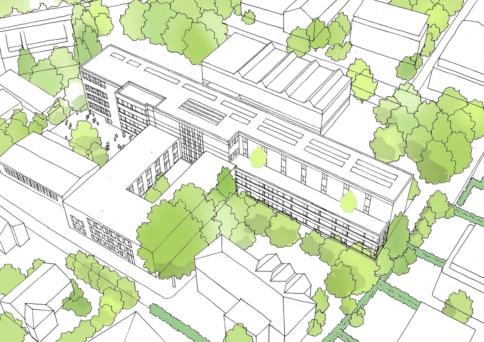 Nun soll das Gymnasium neben weiteren Unterrichts-, Fach- und Differenzierungsräumen auch eine Erweiterung des Verwaltungsbereichs und des Ganztagsbereichs erhalten. Außerdem ist eine barrierefreie Erschließung erforderlich.